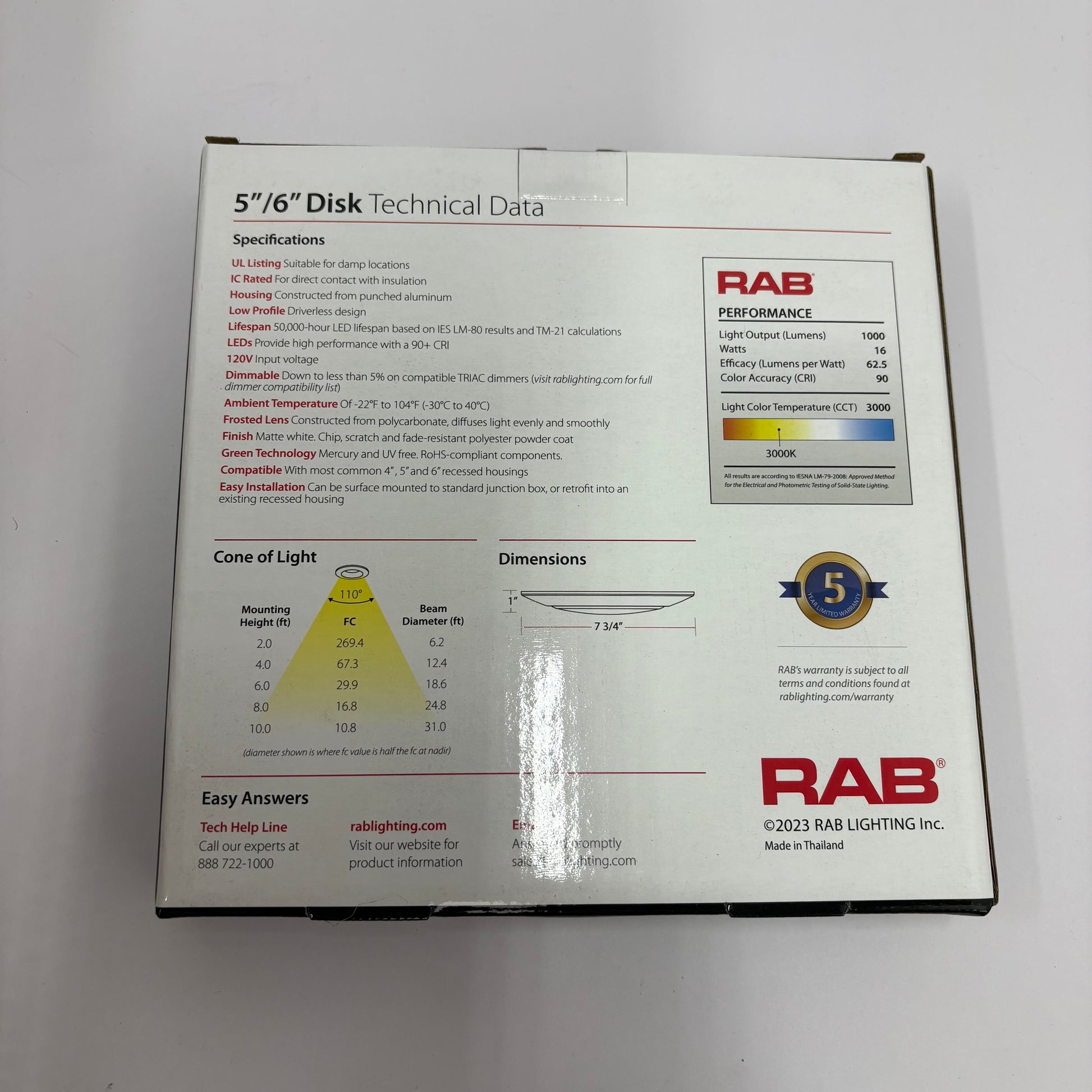 New RAB DISK34 6" Ultra-Slim LED Surface Mount 3000K DSK34-6R16930120WS 4 Pack
