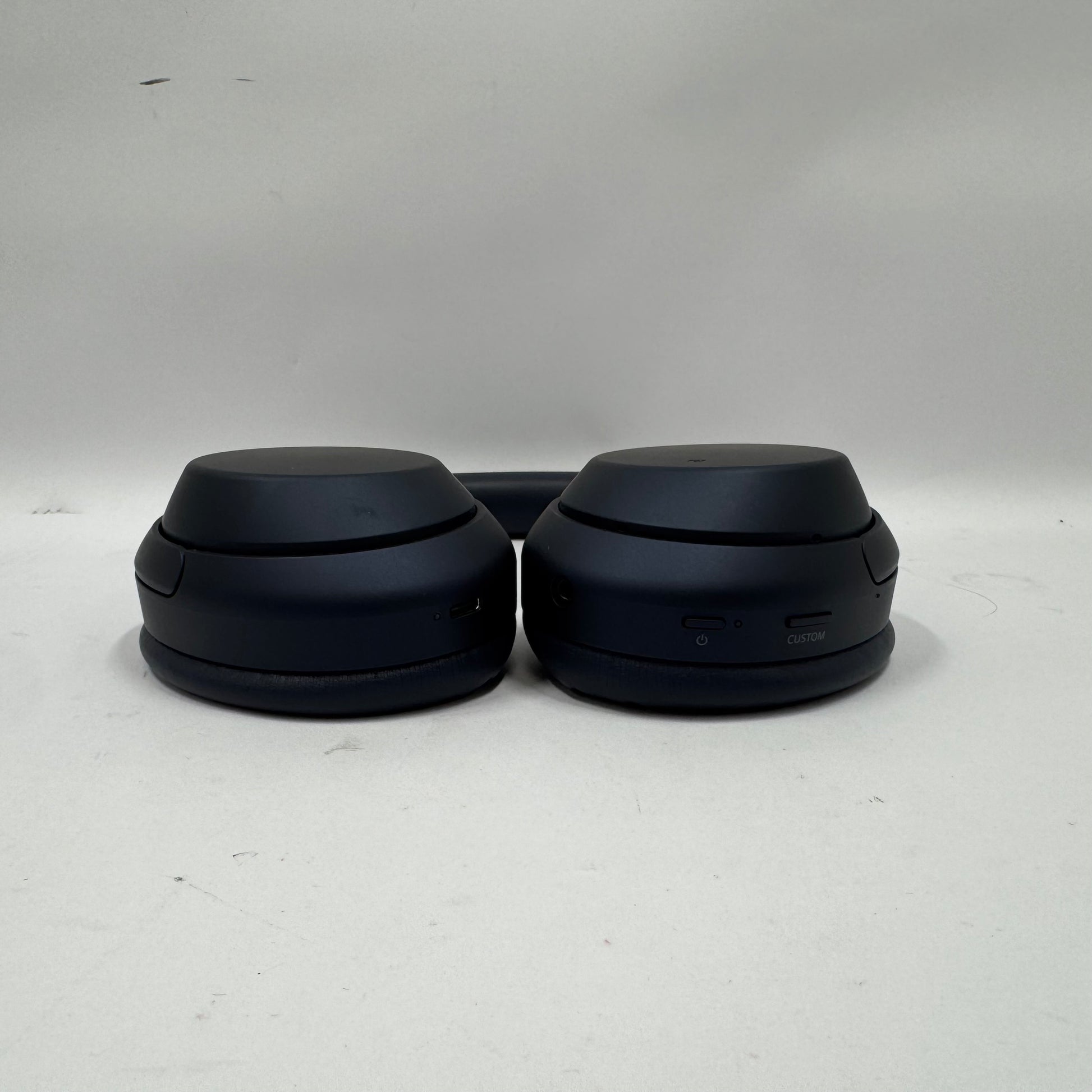 The ear cup housing is in good condition with no damage and minimal wear. The ear cup cushions are in good condition, clean and have no odor. The headband is in good condition with little to no wear. The buttons have no signs of heavy use or wear. The hinges are in good condition with minor signs of use. The ports are clean and in good condition. The earbuds are in good condition and clean.